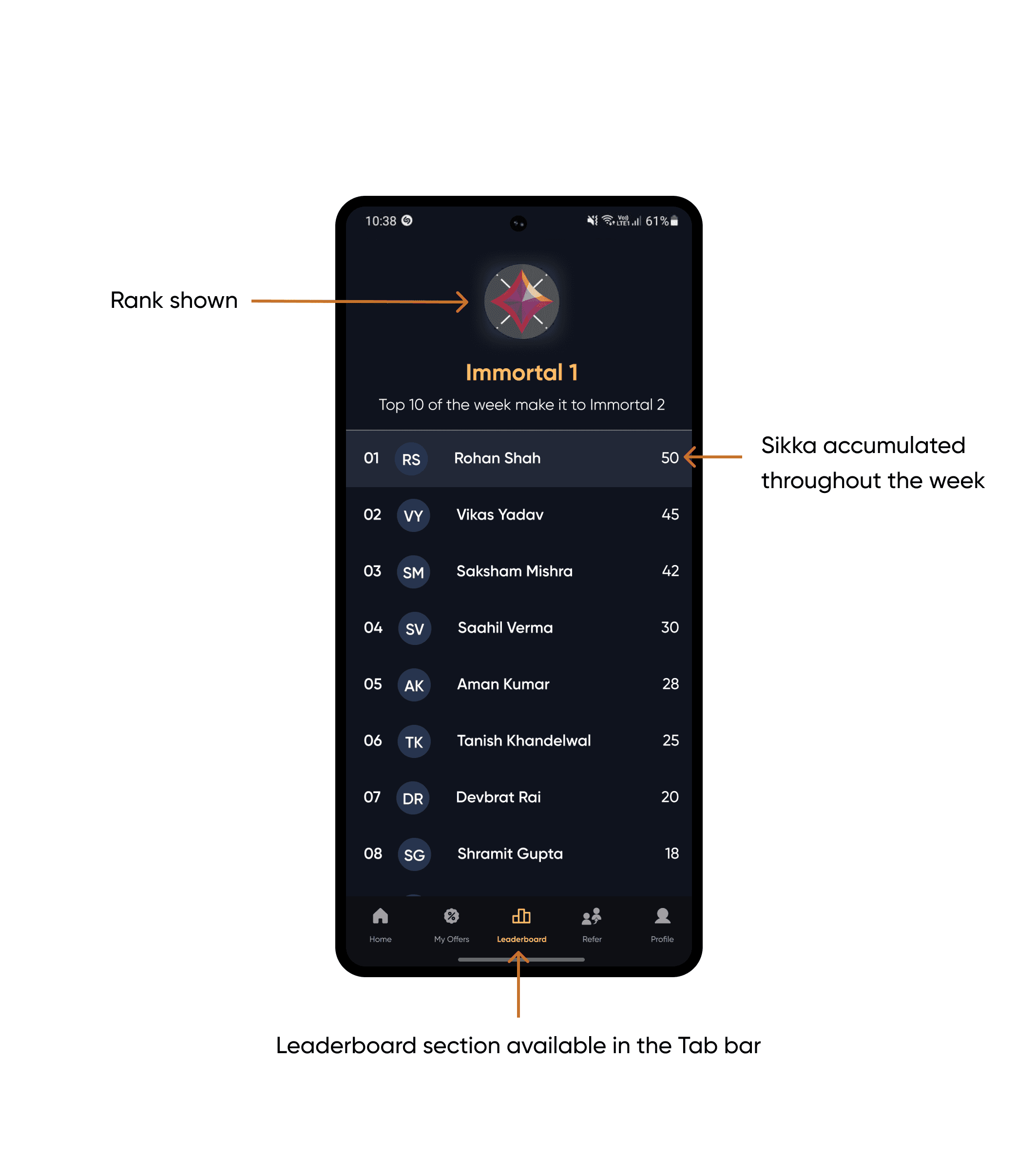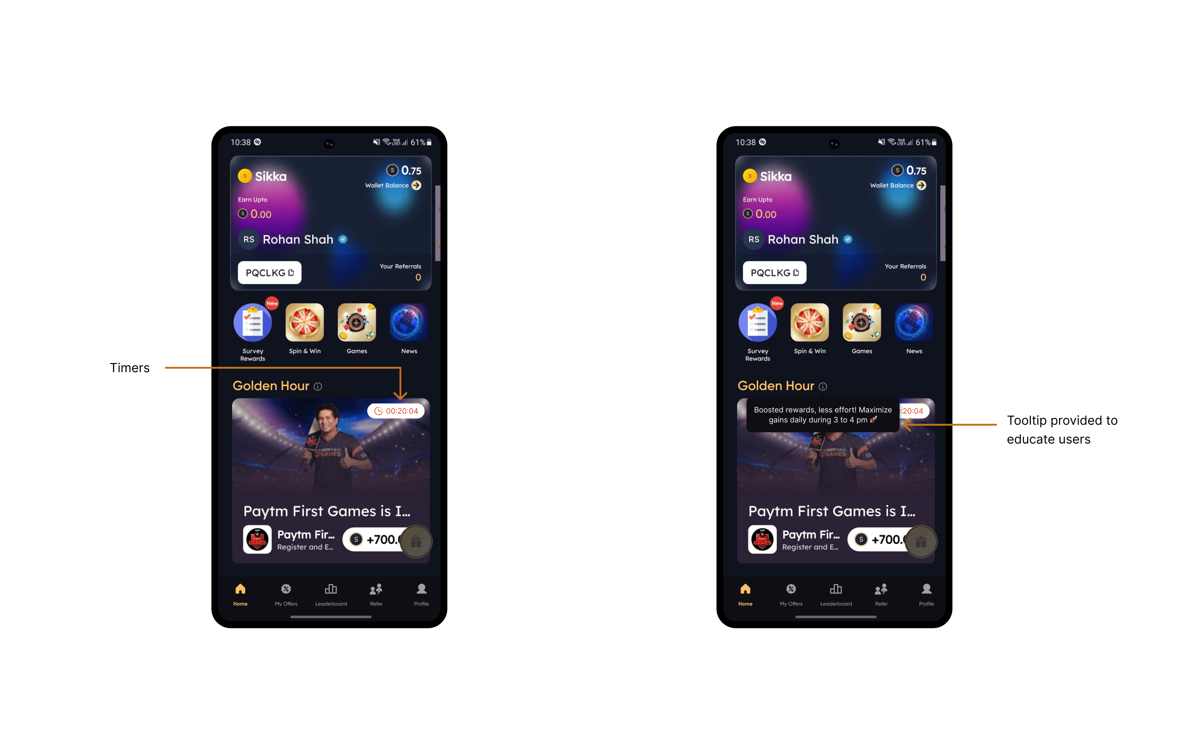 User Retention: The diversified engagement mechanisms, such as the daily challenges and Golden Hour, provide continuous incentives for users to return to the app regularly. The leaderboard and onboarding rewards contribute to reducing churn rates, ensuring that users find value in remaining active on Sikka.